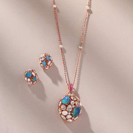 Store Kundan Polki pieces in a dry place, wrapped in soft cotton or muslin cloth. Avoid stacking them together to prevent tangling and scratching.